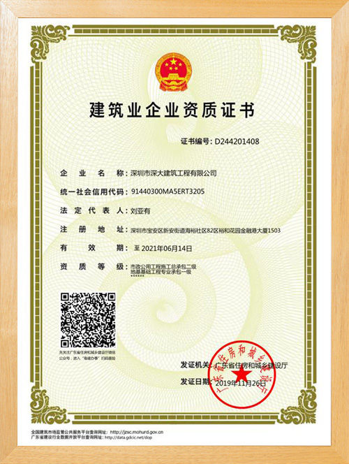 深圳市深大建筑工程有限公司,成立于2017年,注冊(cè)資本5000萬(wàn),總部位于深圳市寶安區(qū)中心地段。公司擁有地基基礎(chǔ)工程專業(yè)承包壹級(jí)資質(zhì),市政公用工程施工總承包二級(jí)資質(zhì),是一家一體化現(xiàn)代型企業(yè)。公司重視企業(yè)內(nèi)部管理與發(fā)展,嚴(yán)格實(shí)施ISO管理體系,率先通過(guò)了ISO9001質(zhì)量管理體系認(rèn)證、環(huán)境管理體系及、職業(yè)健康安全管理體系的認(rèn)證。為公司的長(zhǎng)遠(yuǎn)發(fā)展奠定了穩(wěn)健基礎(chǔ)。
